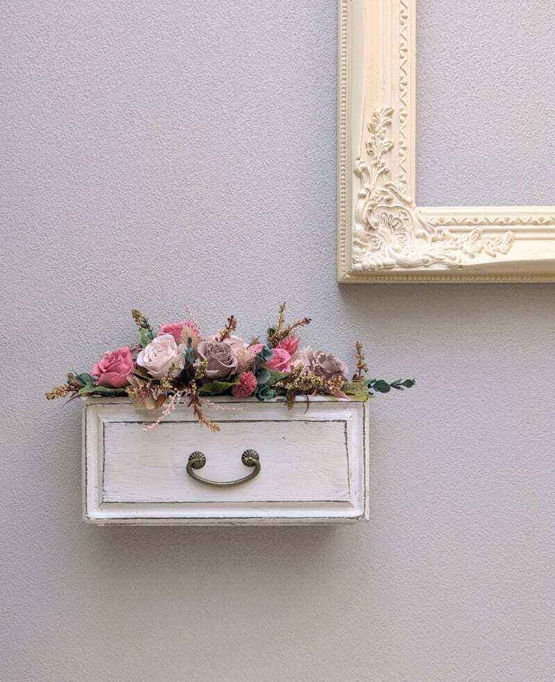 置いても壁にかけても飾れるアレンジです。