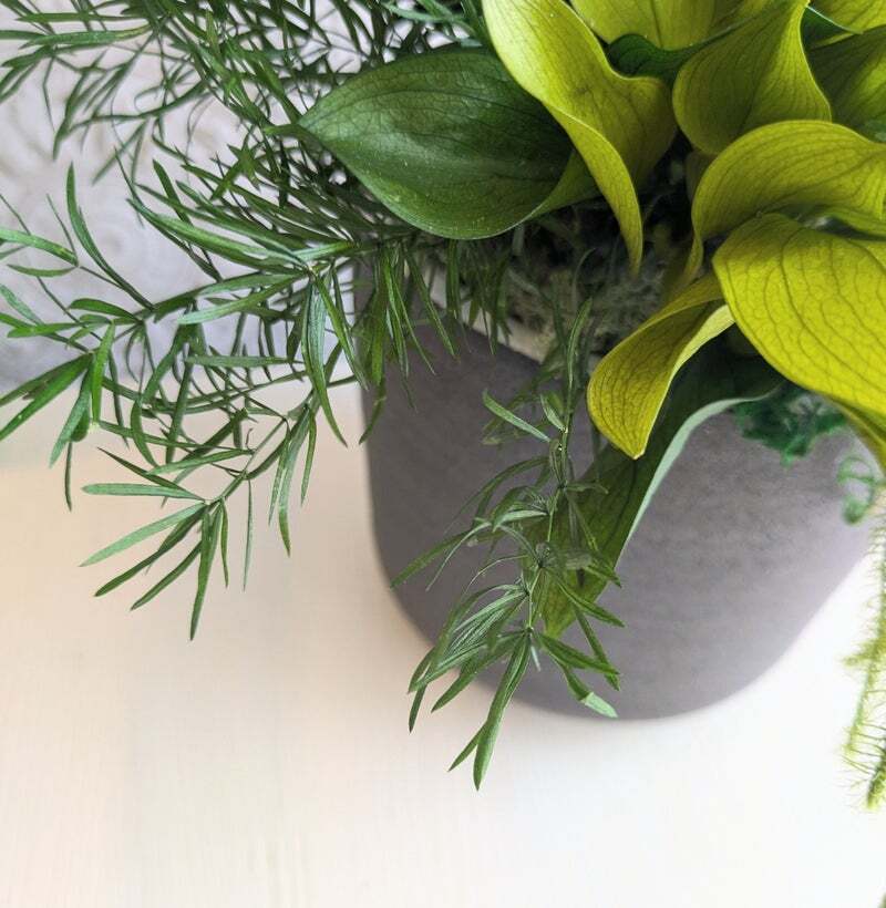 プリザーブドリーフでできた観葉植物寄せ植え風のアレンジです♪