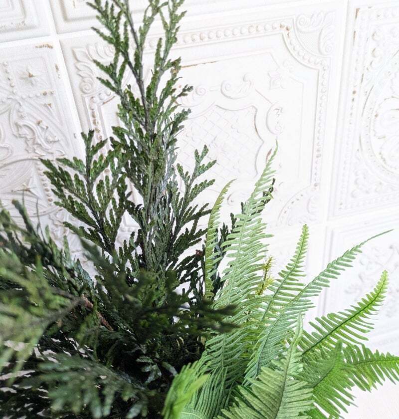 ・ヒバ、ヤマシダ、ルスカス、アスパラ、ヒカゲノカズラ、フィンランドモス(プリザーブド)