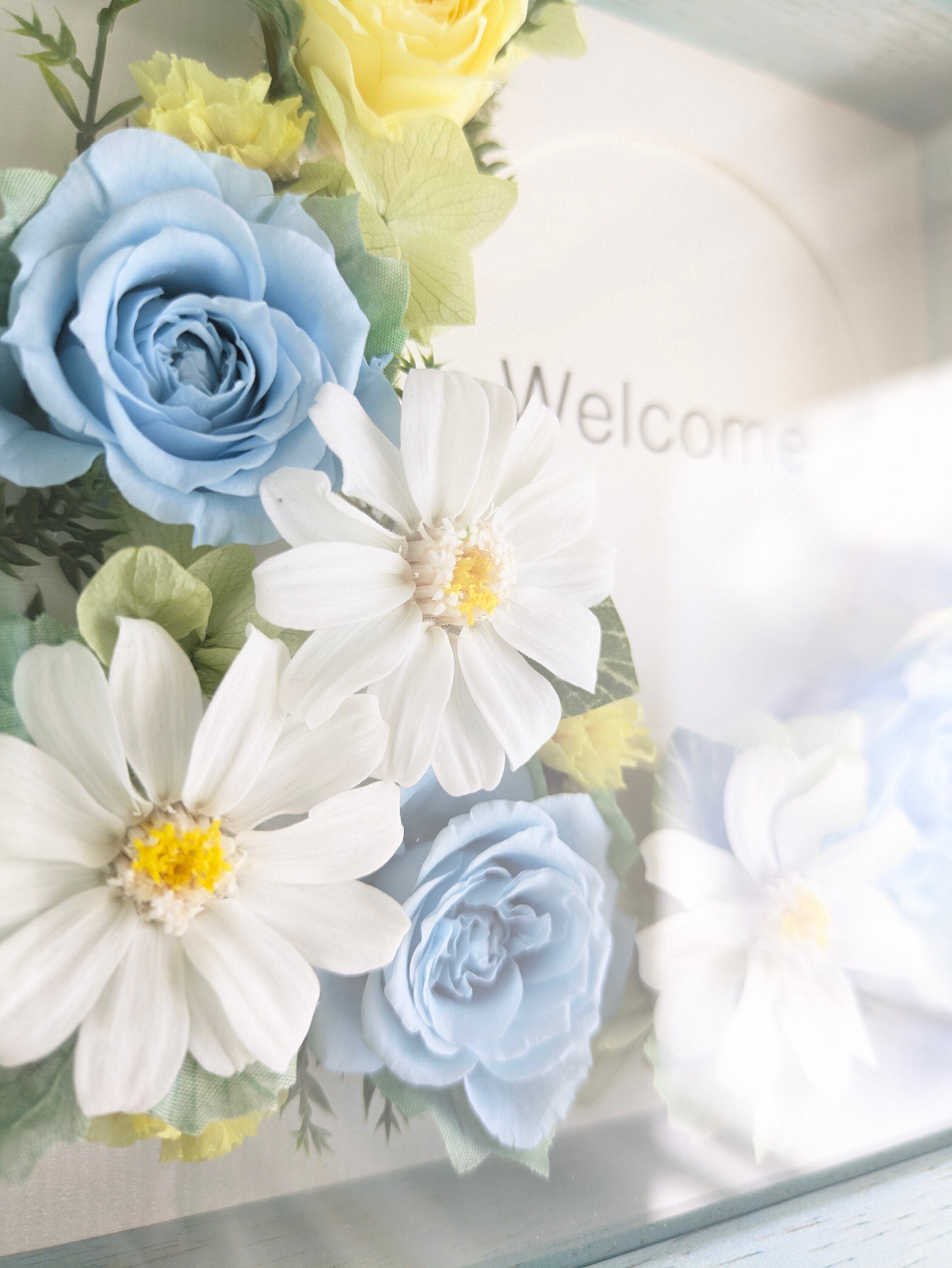 これからの季節にぴったりの爽やかな色合いのフレームアレンジを